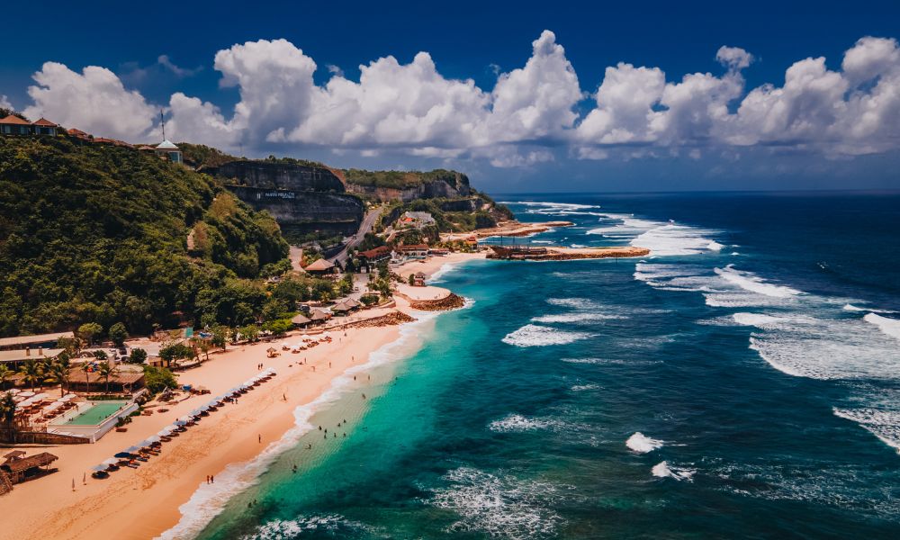 • Or, visit Melasti Beach, one of Bali’s most beautiful hidden beaches. Known for its crystal-clear waters and dramatic limestone cliffs, Melasti Beach offers the perfect spot to relax and swim in the serene surroundings.